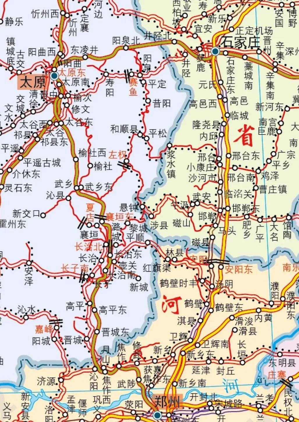 长治北站至后寨段:太焦铁路长治北站至后寨站(晋豫省界K362+995)段,线路长133.3公里。