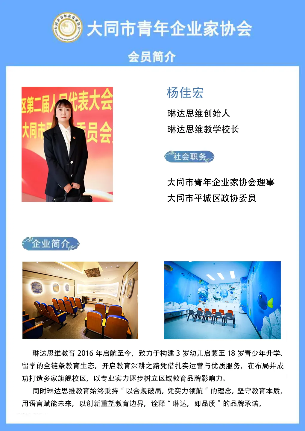 此次参访,不仅让协会会员近距离感受素质教育的创新实践,更为跨行业交流搭建了有效平台。未来,大同市青年企业家协会将持续发挥桥梁纽带作用,组织更多会员企业参访活动,助力企业互学互鉴、协同发展。