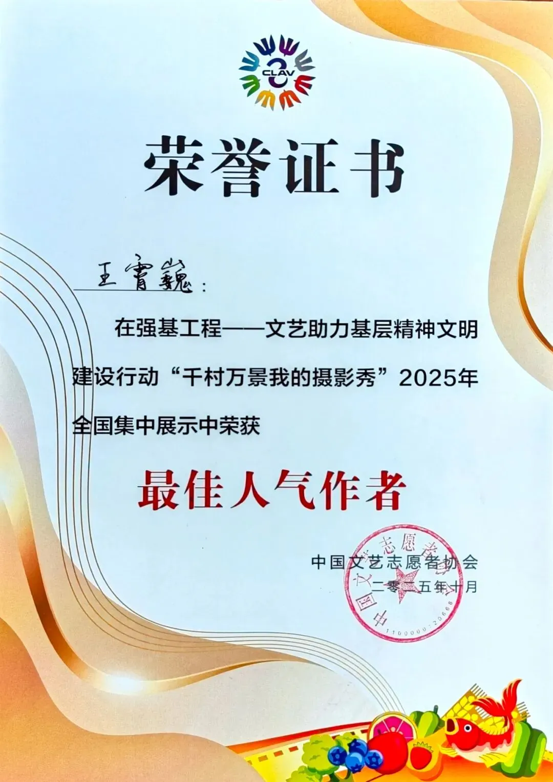 喜讯|大同摄影师王霄巍摘得“千村万景我的摄影秀”全国活动“最佳人气作者”奖