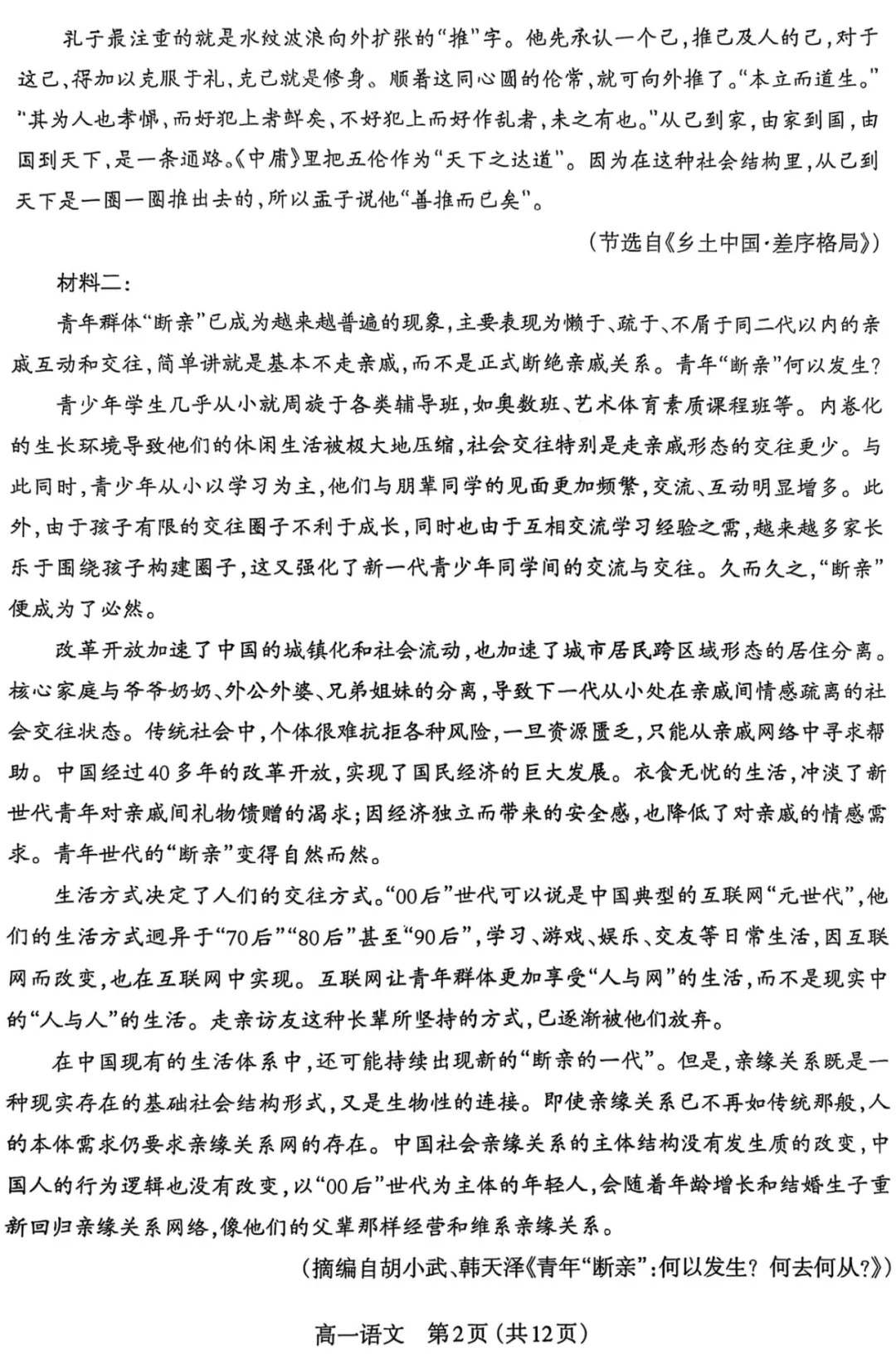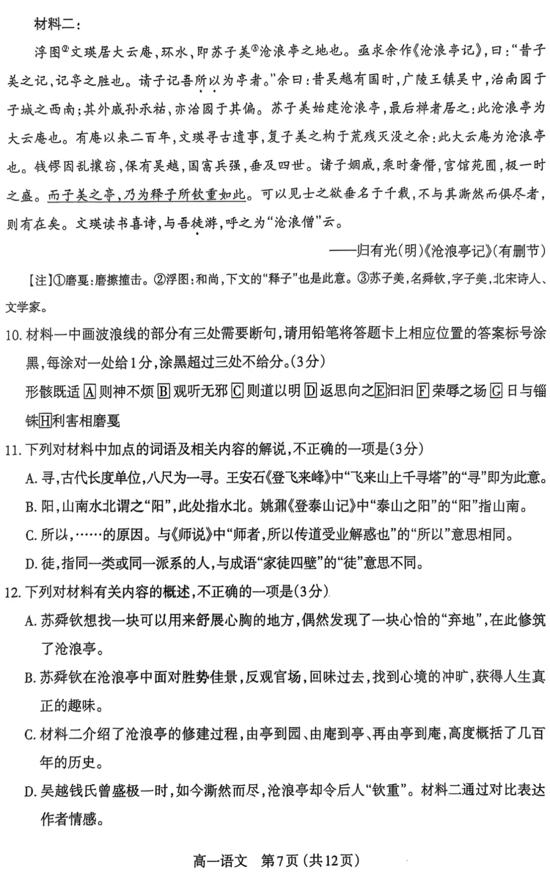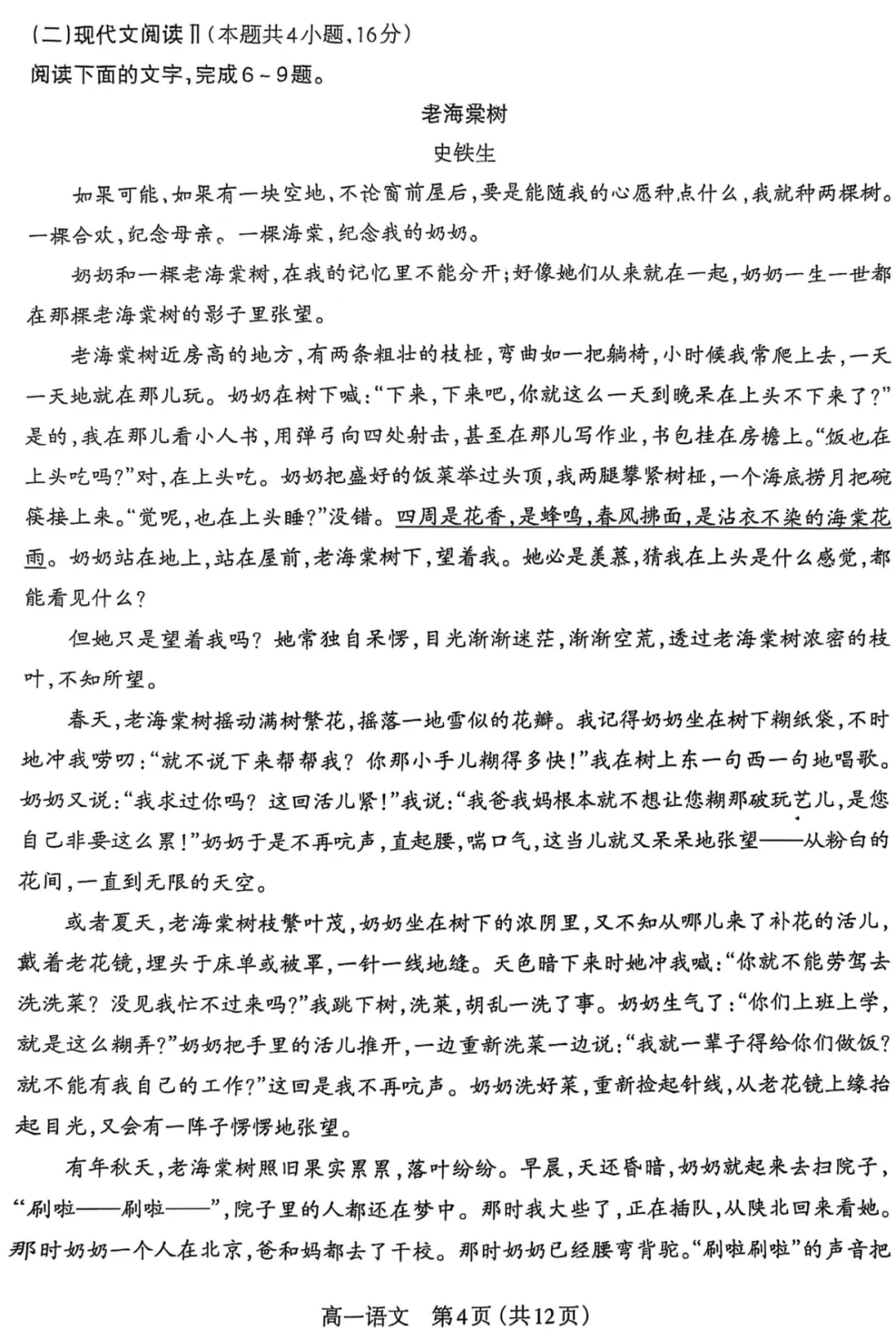 太原市 高一 2024-2025 第一学期 期末【语文】试卷+答案