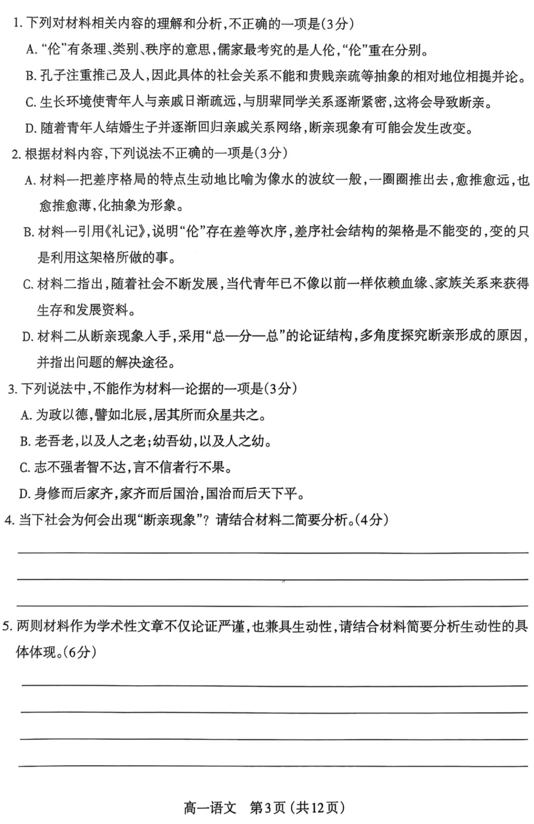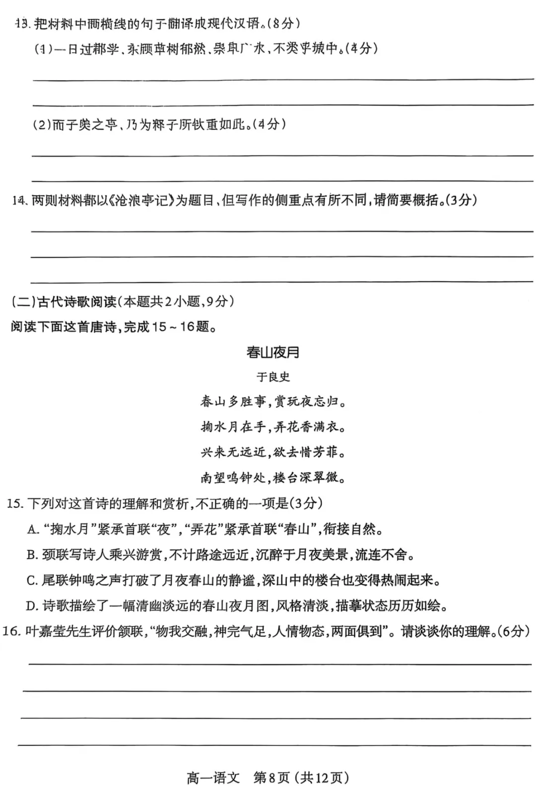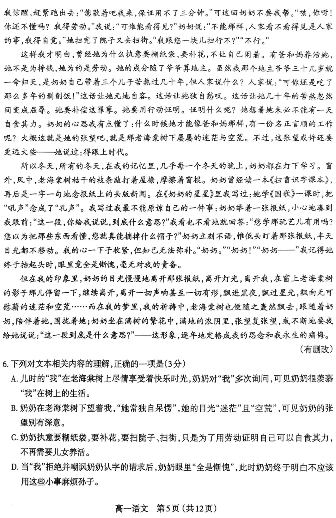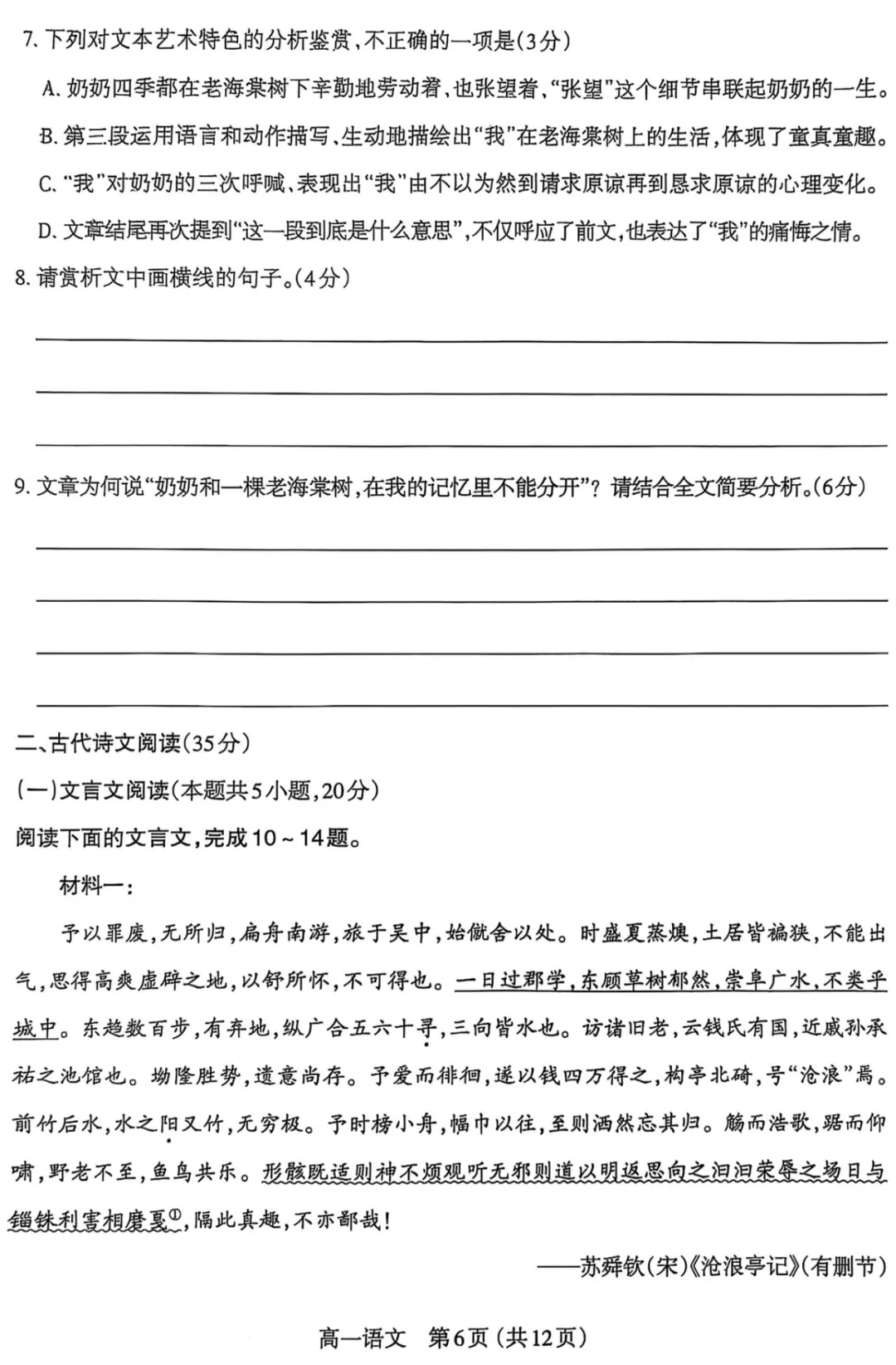 >太原市 高一 2024-2025 第一学期 期末【语文】试卷+答案