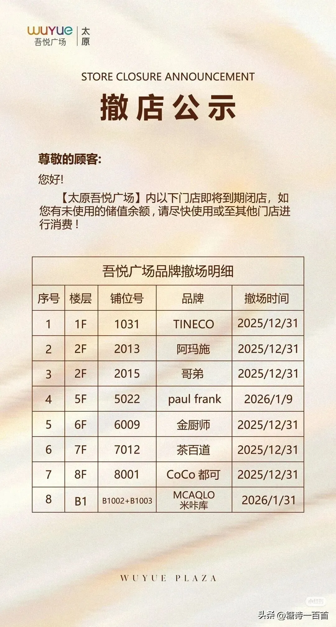 太原吾悦广场部分品牌撤店!