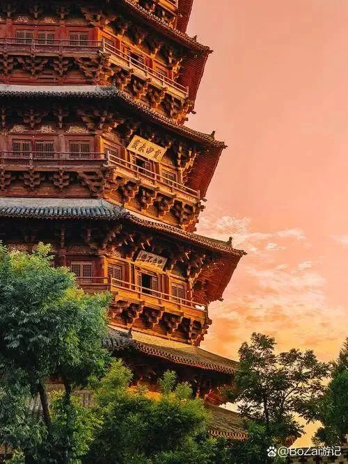 第三,拍照别贪多。应县木塔内部不让上,也别偷着拍,那是对文物的保护。在外面找个角落,借着夕阳的余晖,拍个剪影,比怼着脸拍更有味道。光线最好的时候是下午四五点,金色的光铺在木塔上,怎么拍都好看。