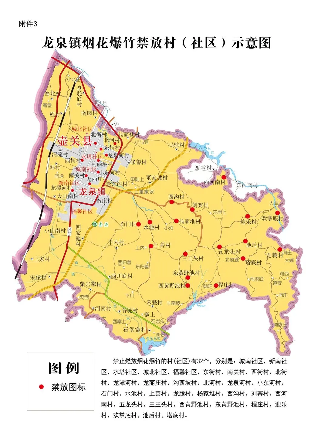 3、龙泉镇禁放范围:县城主城区包含的村(社区)以及石门村、水池村、上善村、龙腾村、杨家堆村、西沟村、刘寨村、西河南村、五龙头村、三王头村、西黄野池村、东黄野池村、程庄村、迎乐村、欢掌底村、池后村、塔底村。
