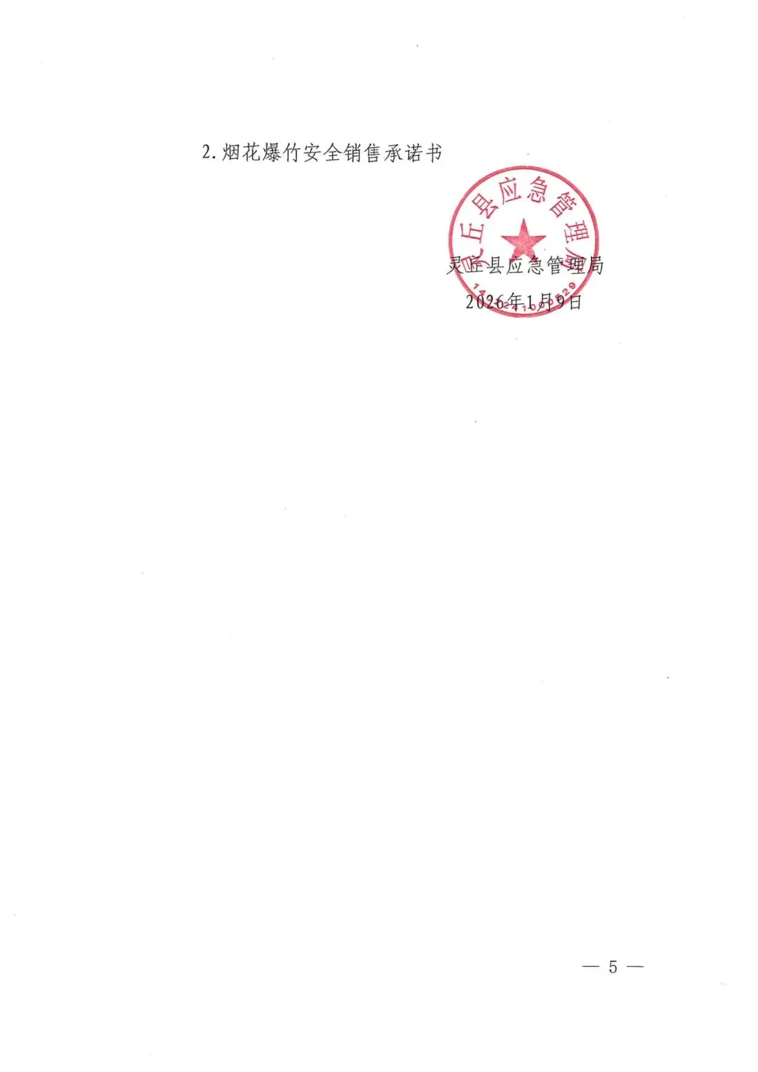 (六)发证。履行以上程序后,经营者与合法的批发企业签订安全买卖合同,并作出安全承诺,即可领取《春节期间烟花爆竹经营(零售)临时许可证》。县应急管理局于2026年2月2日前完成《春节期间烟花爆竹经营(零售)临时许可证》发证工作。《春节期间烟花爆竹经营(零售)临时许可证》有效期30天(2026年2月2日—2026年3月3日),到期后自动作废。