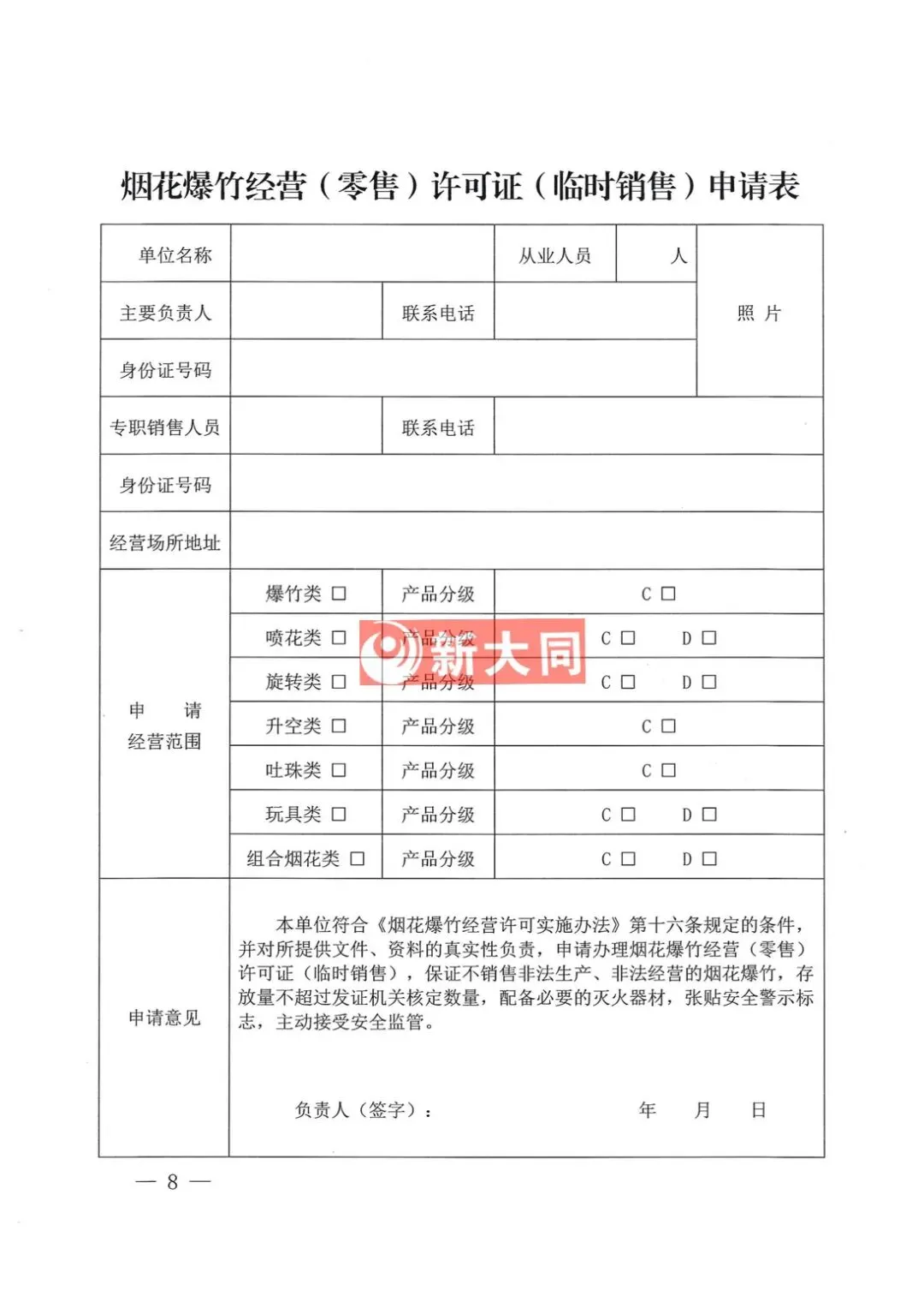 附件:《春节期间烟花爆竹经营(零售)临时许可证》申请表