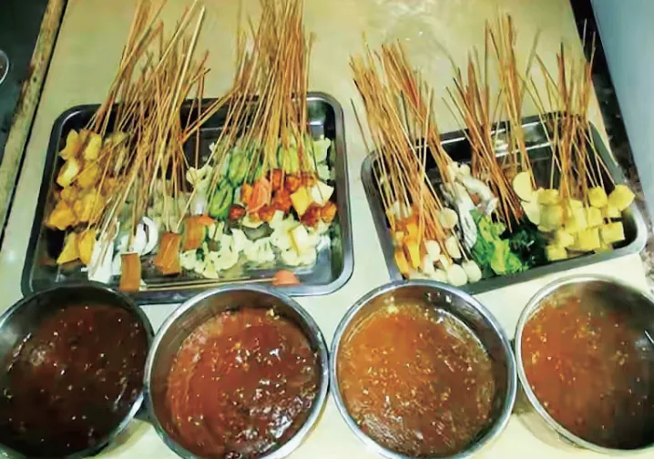 初到山西太原的人,大都会被这里接地气的特色小吃所吸引,如一窝酥、荞面栲栳栳、猫耳朵、太原头脑、义井沾串等。其中,义井沾串可谓最具有市井气息和江湖特色的太原美食。位于汾河河谷平原的太原被一条穿城而过的河流分出东西两城,西城偏南腹地的晋源区北部有一个名为“义井”的城中村,这里曾是老化工区的工厂和生活区。20世纪90年代,老化工区汇集了一大批来自于天南海北的工人。这些工人通常食量大,加之午饭时间紧,注定需要一种全新的美食来调和他们五湖四海的口味。因此,一位大姐便结合川渝串串的特点和四周菜市场遍布的有利条件,首创了独具太原特色的义井沾串。说起来,沾串的“沾”字本应是别字,因为从语义上分析,“蘸”字似乎更为贴切。然而,沾串诞生之时,出入菜市场的大多是识字不多的工人,用“蘸”字做招牌也许会因为笔画复杂而影响到潜在客源,故而“沾串”就这样一直延续了下来。义井沾串之所以几十年来经久不衰,就胜在它几毛钱一串的亲民价位和热闹温馨的就餐氛围。那时候,沾串铺子在义井街巷随处可见,小小的店铺里挤满了前来解馋的下班工人和技校学生。串好的食材被初步加热成熟,淡淡的底味正等着与浓烈的蘸料来一场不可预知的碰撞。因是小本买卖,许多小店对于店里的装修和器物都不甚在意,装蘸料的器皿可以是罐头瓶、粗瓷碗,也可以是大小不一的奶粉罐子。生意好时蘸料消耗得极快,每家小店都会准备一些暖水壶用来补充蘸料。时至今日,即使一些店铺装修精致,但用暖水壶添料的传统仍然保留了下来,成为义井沾串的一大特色。起初,义井沾串的食材都是就地取材,种类有限,蘸料种类也不多,只有酸辣、酸甜和孜然等基础口味。如今,串在竹签上的食材愈加丰富,有豆皮、丸子、土豆、海带、腐竹、粉条、鱼丸、蟹棒、鸭血……蘸料也变得品类繁多,包括韭花酱、蒜蓉酱、香辣酱、孜然酱、芥末酱、海鲜酱等,不论是口味清淡的南方人士,还是无辣不欢的川渝游客,总能找到适合自己口味的蘸料。长方形的操作台前,七八个盛着蘸料的深口铁罐一字排开,人们拿着自己的串串就像围着转经筒般虔诚地走着,去品味每一种蘸料的奥义。这种人随着蘸料边走边尝的模式,实在是一种全新的就餐体验。烟火气体现了一座城市的温情,太原义井沾串带来的烟火气,就是这座城市最温暖的底气!文章摘自《中国食品》杂志2025年第24期114页