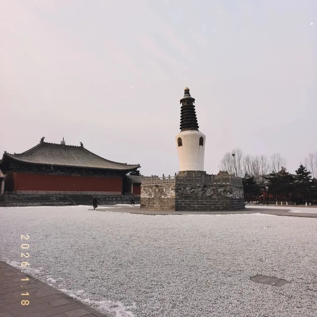 法华寺里,只有三个大殿和一些配殿,在第三座大殿前,还有一个藏传佛教式的白塔。
