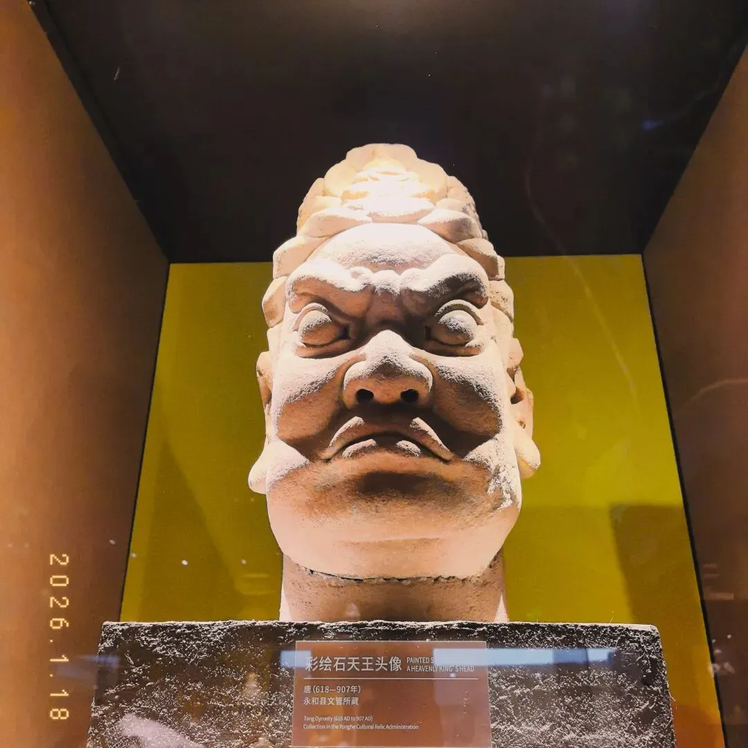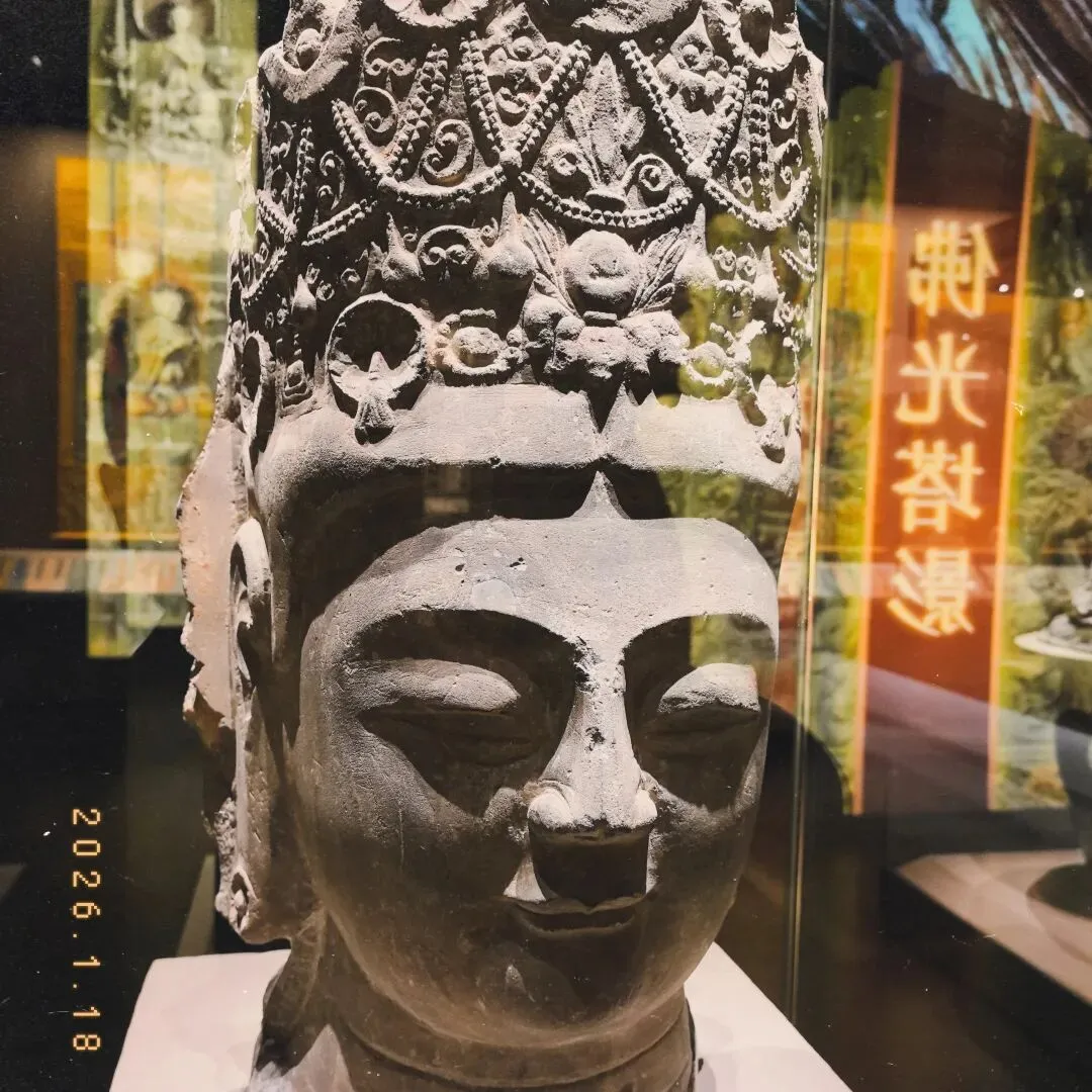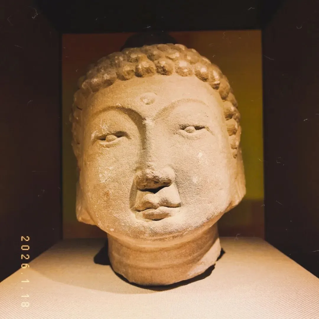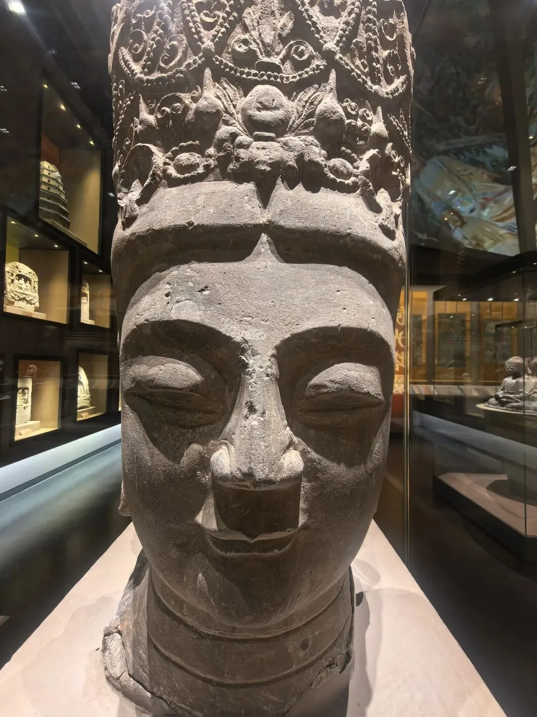 有一个唐时期的和一个宋时期的佛头对比很有意思。