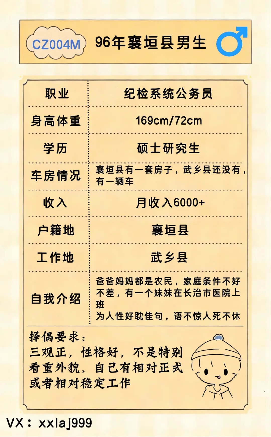 >【CZ004M】96年长治市襄垣县男生,纪检系统公务员,非常实在的男生