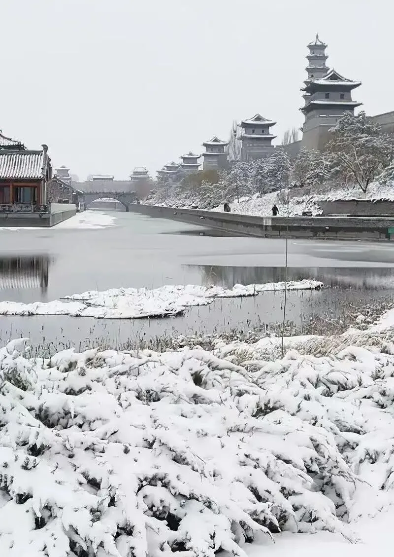 古城深巷在等待一场雪,夜幕中,街灯次第点亮,雪花覆盖了青石板,光晕覆盖了积雪,街角小店里的馄饨热气蒸腾,捧一碗,啜一口,城市的烟火气瞬间暖化了一冬的寒意。匆匆的脚步期待一场雪,晴空一响的爆竹,门楣两侧的春联,窗棂上绽放的石榴,庭院一对火红的灯笼,当口中呵着白气,双手互握成心形,在互致问候的祝拜中,美好的祝愿和期待已寄放在瑞雪消融后的春暖花开。