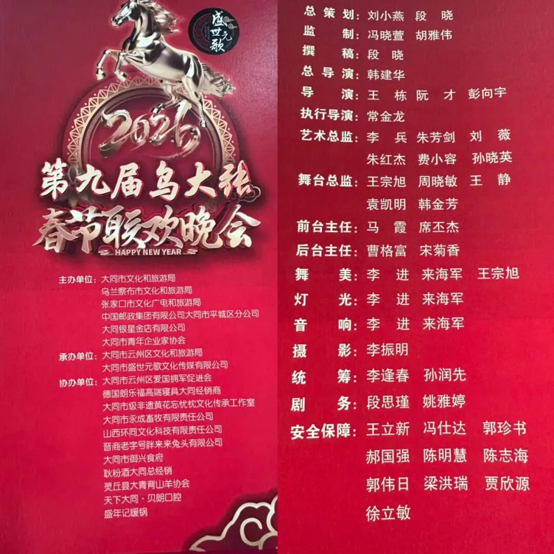 自成立以来,大同市云州区爱国拥军促进会在区退役军人事务局的指导下,始终坚守拥军初心,推动社会化拥军工作走深走实。此次受邀协办第九届乌大张春晚,是云州区爱国拥军促进会首次将爱国拥军理念融入大型区域文化交流平台,既是对过往工作的认可,更是拓展社会化拥军维度的全新实践。