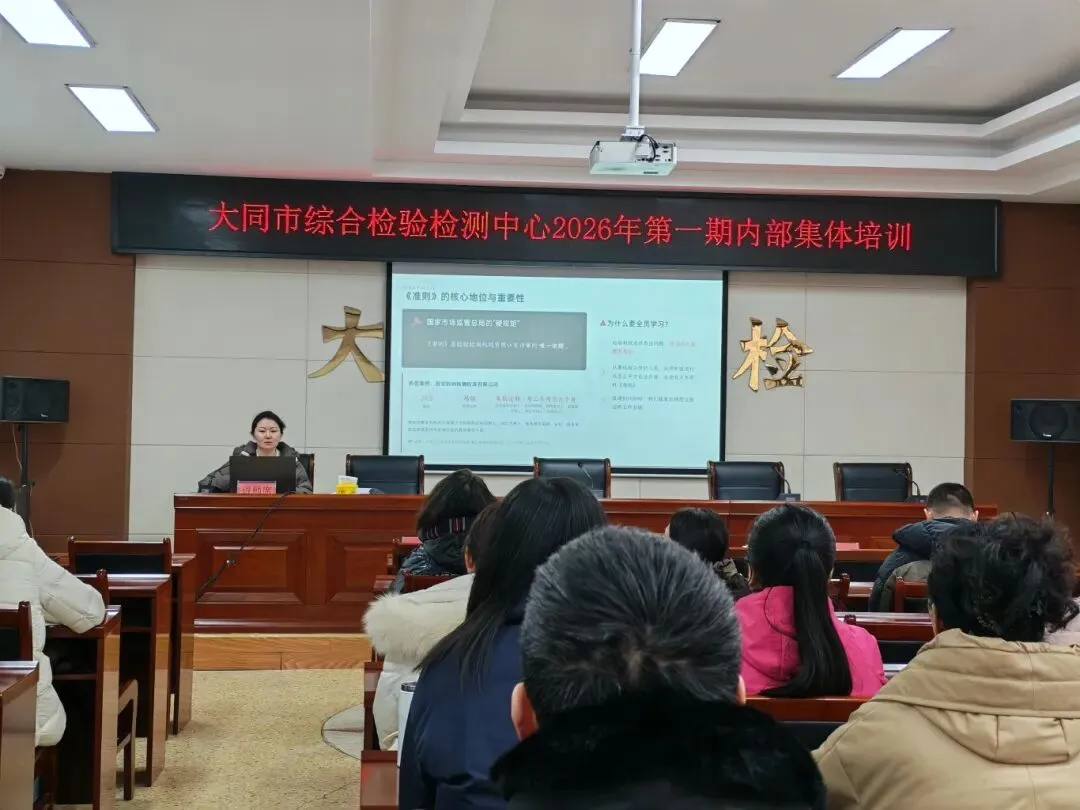 为深入学习贯彻检验检测机构相关法律法规及政策要求,全面锻造高素质专业化检验检测队伍,近期,大同市综合检验检测中心组织开展2026年第一期集体培训。中心领导、总师、工会主席及各领域业务骨干分场地、分批次参加,为期三天的系统性培训为检验检测工作高质量发展筑牢能力根基。