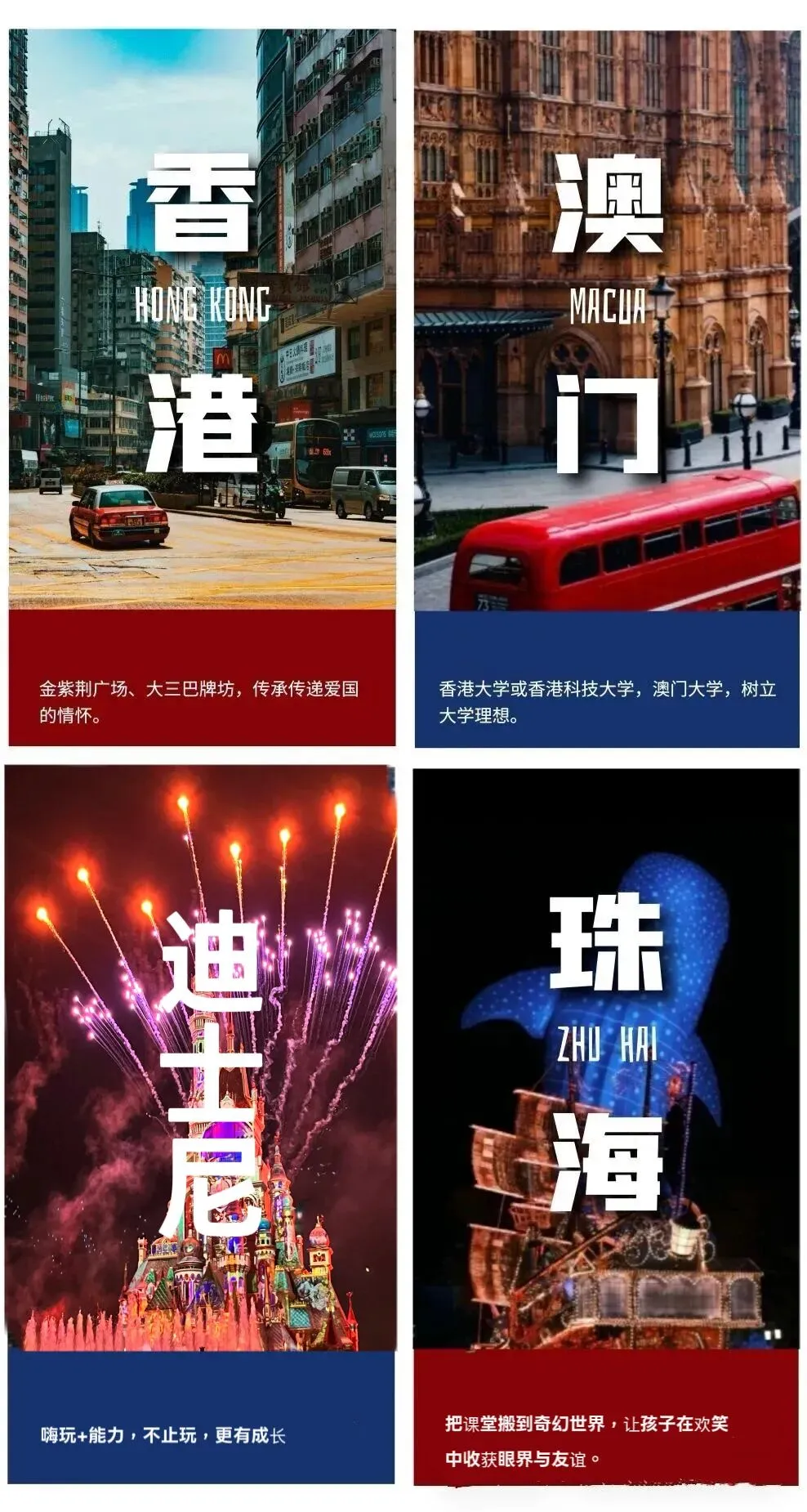 带领孩子们去往香港、澳门、深圳、珠海;