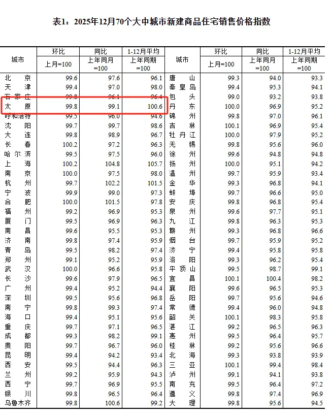 环比(上月 = 100):99.8 → 较上月微跌0.2%