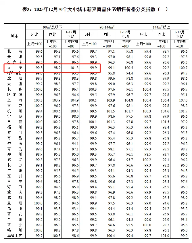 小户型(90㎡及以下)环比跌幅最大,大户型相对抗跌;同比全段下跌,但全年平均仍上涨,反映年末小户型需求更弱,而全年累计仍有支撑。