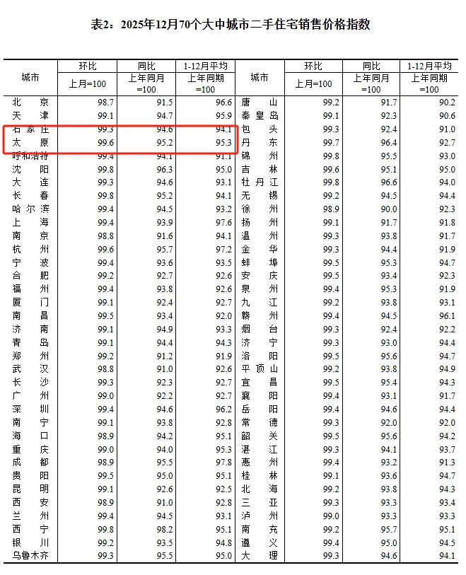 同比(去年同期 = 100):99.2 → 较去年同期跌0.8%