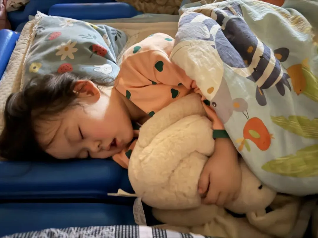 老师们全程陪伴,为孩子掖被角、安抚情绪,在柔和的夜灯下,聆听老师讲述温暖故事,孩子们带着满足与勇敢进入梦乡。