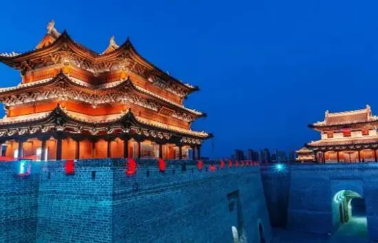 【大同古城】自北魏建都起,历经辽金、明清等 2300 余年,里坊制的基本格局自古延续,明朝大将徐达增筑城池后,形成了大同四大街、八小巷、七十二条绵绵巷的城市肌理,街区内的 85 个四合院落是在这些历史基础上修缮而成。夜幕降临后,表演精彩纷呈,为游客带来视听盛宴。
