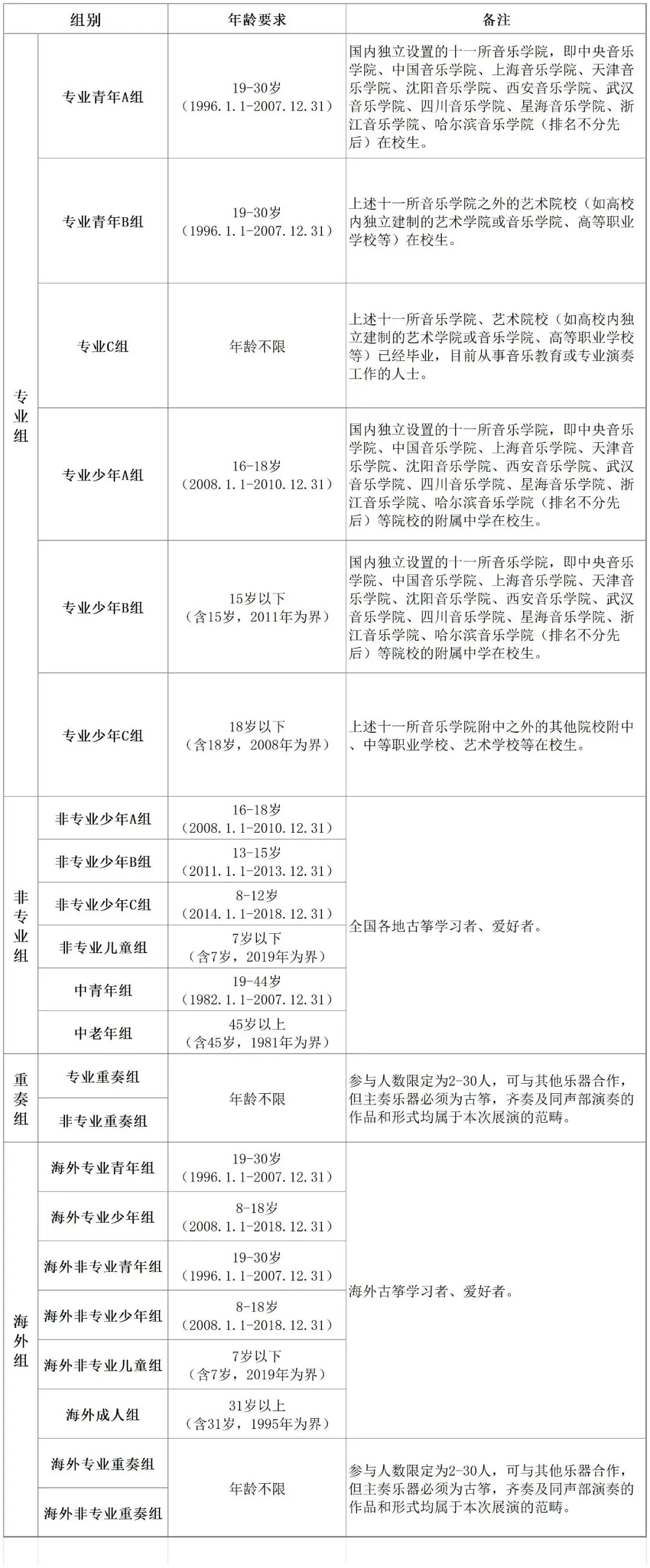 ①参演曲目应按全曲准备且背谱演奏。