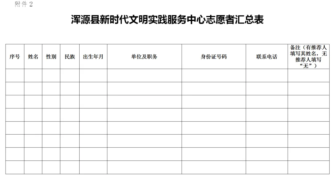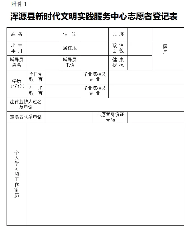 1.浑源县新时代文明实践服务中心志愿者登记表