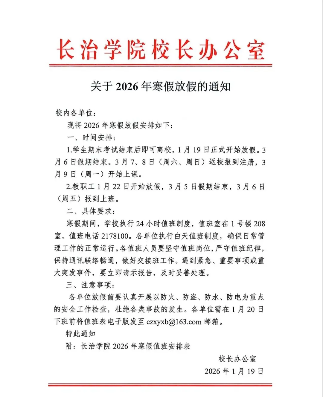 >长治学院开学通知!