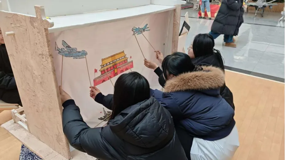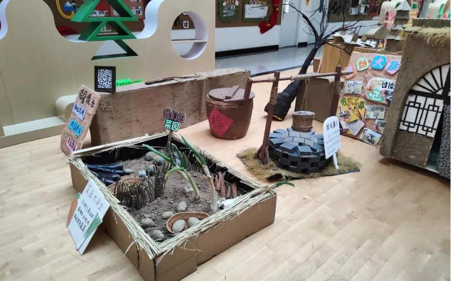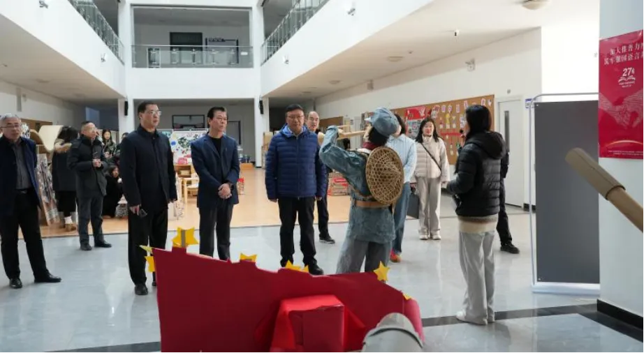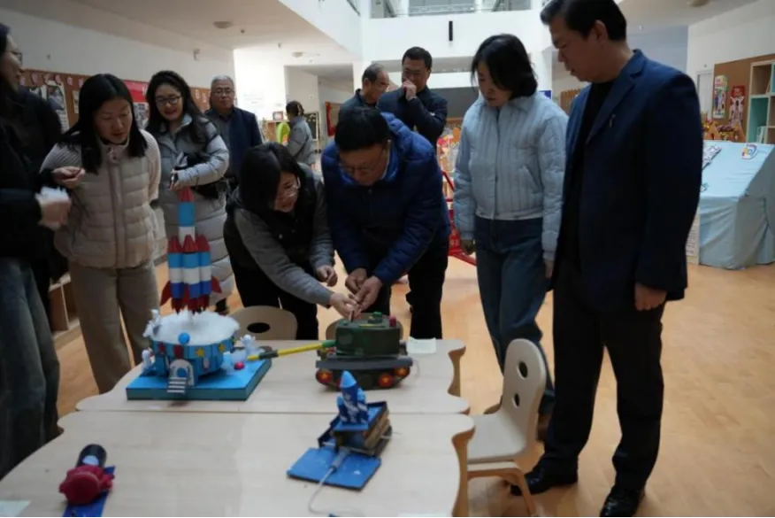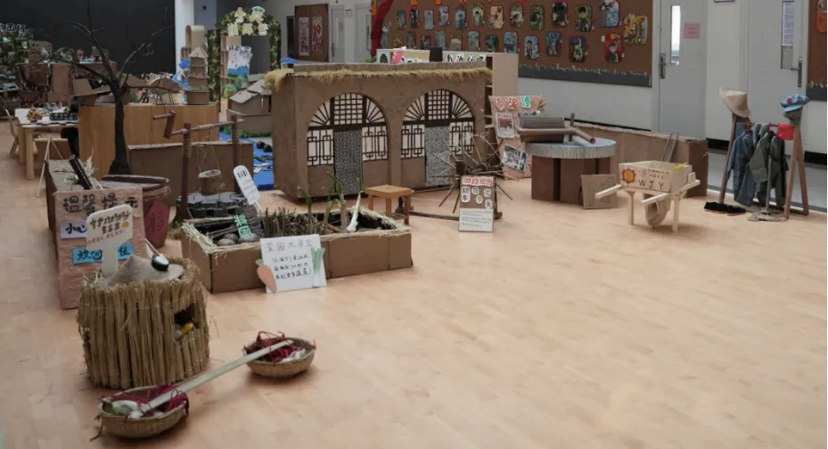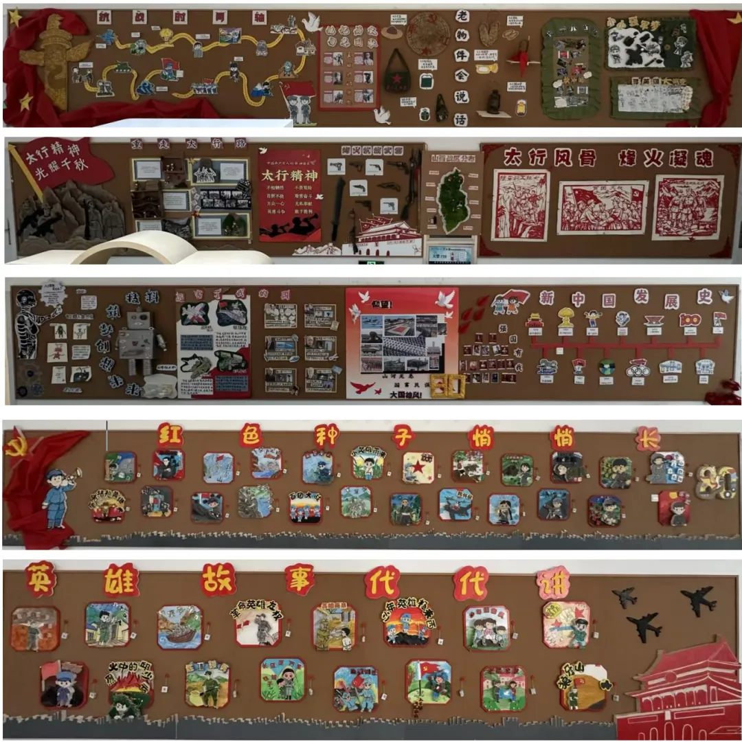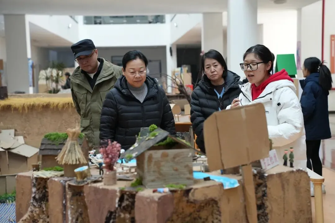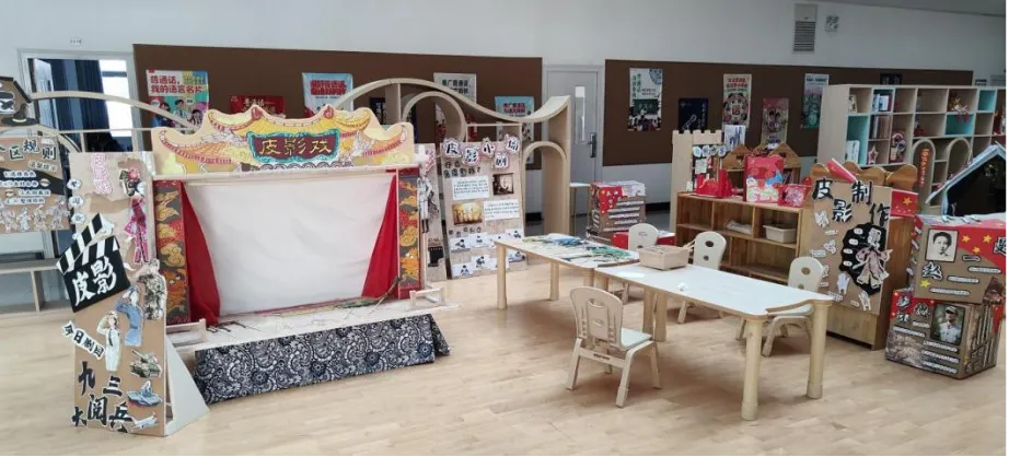南泥湾劳动体验区里,孩子们化身“小小劳动者”,体验耕耘、收获的乐趣,在角色扮演中感悟“独立自主、艰苦奋斗”的南泥湾精神,让红色品格在劳作实践中自然养成。以“飞夺泸定桥”为原型打造的建构区,将的历史智慧与幼儿动手能力培养相结合,在空间建构与角色创作中,重温革命先辈的生存智慧与抗争精神。体育融合区,更是将红色故事转化为体能挑战任务,孩子们跨越障碍、奋勇争先,在奔跑与协作中,将“勇敢无畏、坚韧不拔”的精神内化于心、外化于行。地道战演示区则以模型还原了抗战时期的隐蔽场景,幼儿可以沉浸式感受军民同心、以智破敌的勇气与智慧,读懂平凡中的伟大。皮影戏表演区搭建起传统文化与革命叙事的桥梁,聆听革命小故事、亲手操控皮影、演绎红色小剧本,在光影流转与角色扮演中,历史变得鲜活生动,红色种子在孩子们心中悄然萌芽。红色绘本阅读区陈列着学生们手绘的红色绘本,幼儿在图文并茂的故事里认识英雄、了解历史。柔软的阅读空间搭配生动的绘本内容,革命精神在沉浸式阅读中永续传承。科学区摒弃对武器的简单模仿,转而聚焦科技背后的自然之力,传递理性和平理念。天梭坦克、静音声波装置、升降液压火箭、气压机械臂等趣味科学道具,传达“善用科技、捍卫和平”的理念,助力幼儿树立正确的科技观与和平观。红色主题墙作为重要的教育载体,以时间为轴,以事件为线,完整讲述了1931年至1945年的革命峥嵘岁月,更延伸至1949年新中国成立后的发展历程。以绘画、手工、故事创编等多元形式让幼儿在耳濡目染中感知榜样力量,读懂今日幸福生活的来之不易,让红色记忆在潜移默化中扎根。本次展览不仅是环境创设,更是一次模块化课程资源建设的实践尝试过程。它诠释了学前教育专业如何将思政教育目标,通过具身化、游戏化的专业路径,转化为未来幼师可执行、可迁移的教育能力,为红色文化融入幼儿教育提供了扎实的实践范式。供稿:张 琦 王 琼