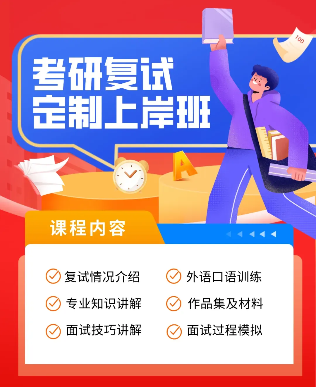 复试笔试辅导/复试面试自我介绍/面试专业问题问答/考前模拟面试训练/作品集指导/复试调剂指导