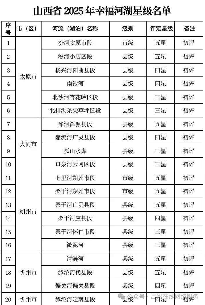近日,山西省水利厅公示2025年省级幸福河湖名单,汾河太原市段等60条(段、个)河湖(库)被初评为2025年省级幸福河湖。