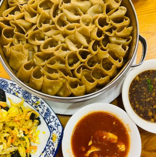 一定要尝尝“莜面栲栳栳”。这名字听着拗口,吃着是真香。做法挺讲究,师傅把莜面团在光溜溜的石板上这么一推、一卷,手指头一挑,就成了一个个整齐的蜂窝卷,立在笼屉里蒸熟。端上来时热气腾腾,蘸着酸辣的西红柿酱或者羊肉臊子吃。口感不是软烂的,而是带着一股子韧劲,嚼在嘴里,麦香混着醋香,越嚼越有味,一笼下去,人就踏实了。