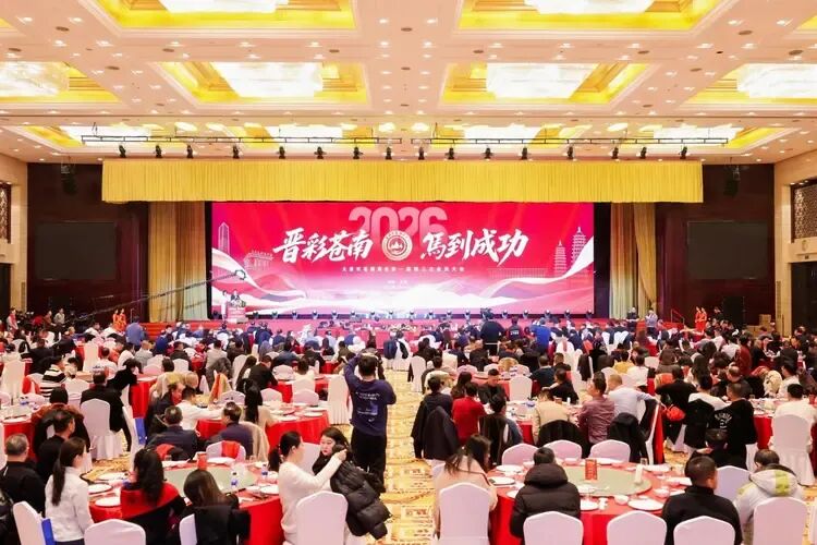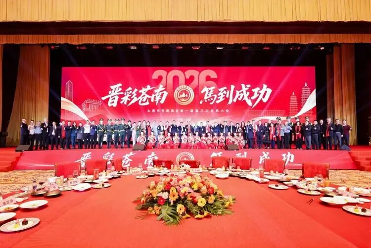 2026年1月16日下午,太原市苍南商会第一届第三次会员大会暨“晋彩苍南·马到成功”新春联谊晚会在湖滨国际大酒店圆满举行。太原市五台企业联合会(以下简称“企联会”)秘书长闫建宏作为友好商会代表受邀出席,与山西省、太原市及苍南县相关领导,近百家兄弟商协会代表及社会各界友人齐聚一堂,共叙乡情友谊,共话合作发展,在辞旧迎新的热烈氛围中,为晋浙两地经济文化交流写下浓墨重彩的一笔。