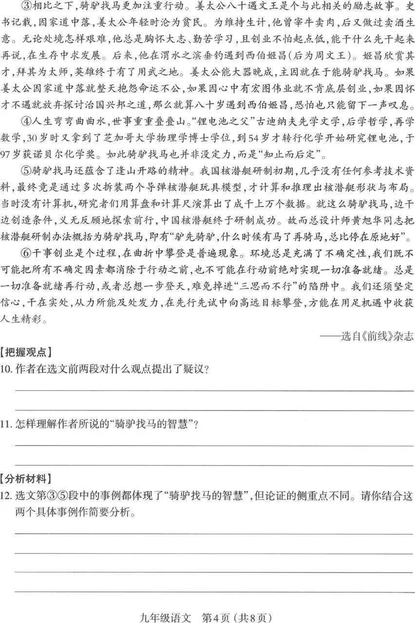11.作者所说的"骑驴找马的智慧",指的是干事创业要坚定信心,从力所能及处发力,能干什么先干起来;也要秉持逢山开路的精神,坚定信心,边干边创造条件,在先行先试中向高远目标攀登。