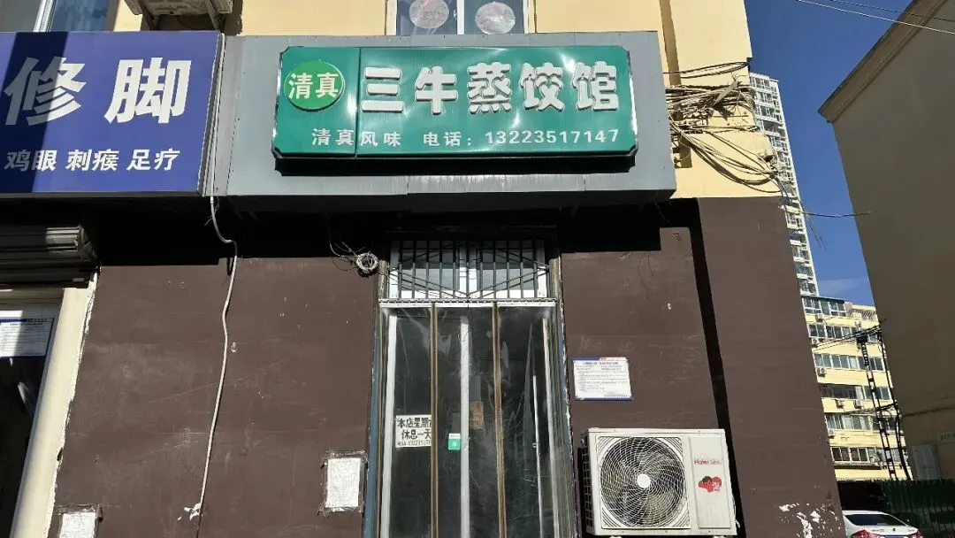 三牛蒸饺馆是一家典型的家庭式清真餐馆。店面由居民楼一层改造而成,空间不大,环境朴素。店里日常由家人操持,从包饺子到传菜,都透着一股家常的亲切感。