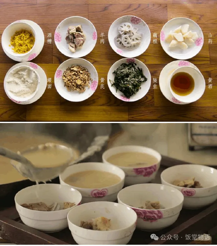 太原头脑是一种挺小众的山西太原美食,叫“头脑”学名叫八珍汤,顾名思义它是汤状食物,原料是黄芪、良姜、煨面、就是炒过的面粉,连菜、肥羊肉,这个肥羊肉是羊腰窝的肉,长山药、黄酒、酒糟、羊尾油。