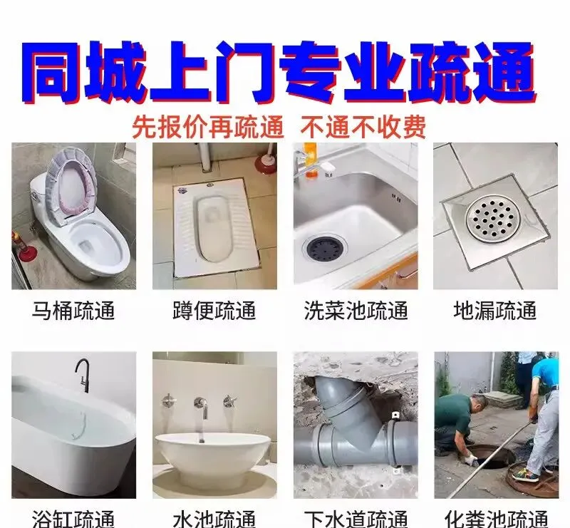 附近专业提供疏通下水道、管道疏通、马桶疏通、地漏疏通、化粪池清理等同城上门服务,师傅24小时接单,快速响应。