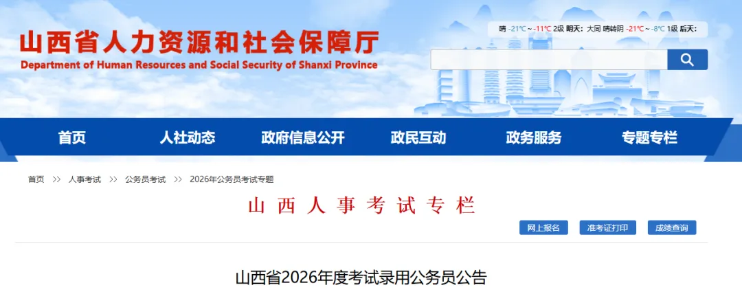 山西人事考试专栏(http://rst.shanxi.gov.cn/rsks/)