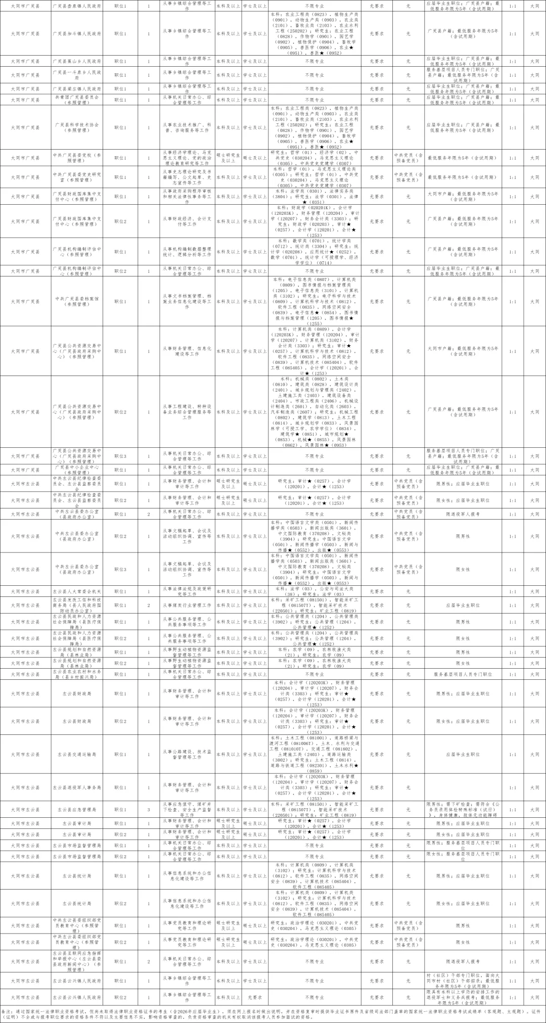 具体的招考单位、职位、人数、资格条件等可查询招考职位表。报考者可通过以下网站查询: