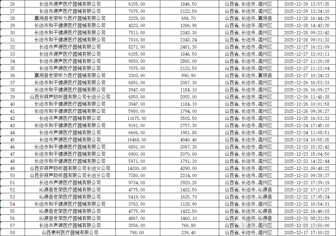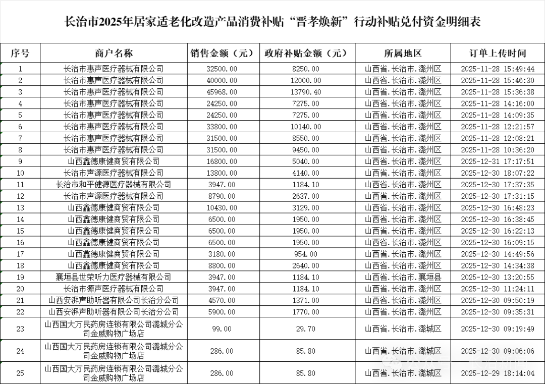 附件:长治市2025年居家适老化改造产品消费补贴“晋孝焕新”行动补贴资金兑付明细表