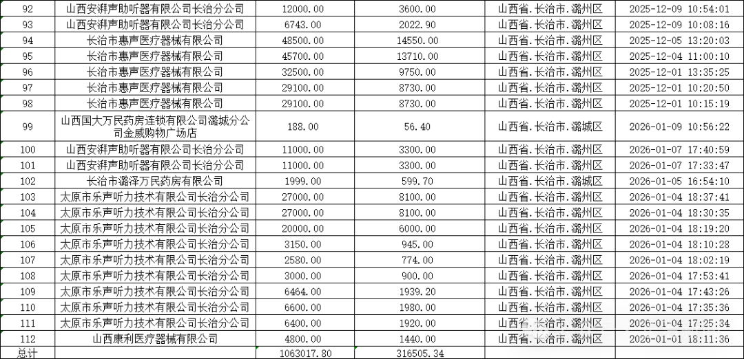 根据《山西省民政厅山西省发展和改革委员会山西省财政厅山西省商务厅关于印发<2025年山西省实施居家适老化改造产品消费补贴"晋孝焕新"行动方案>的通知》(晋民函〔2025〕68号)要求,经第三方机构初审、复审,市民政局核实,现将2025年“晋孝焕新”活动期间通过审核的订单补贴资金明细进行公示。补贴资金涉及销售主体12家,订单112笔,共计316505.34元,拟通过中国工商银行股份有限公司长治延安中路支行进行拨付,具体信息详见附件。本次公示时间从2026年1月20日至2026年1月24日。公示期间,对公示内容如有异议,可通过电话或电子邮件形式向市民政局反映。反映情况时请提供联系方式和所反映具体事项的证明材料。