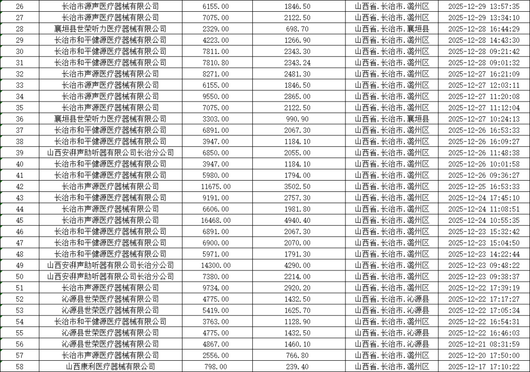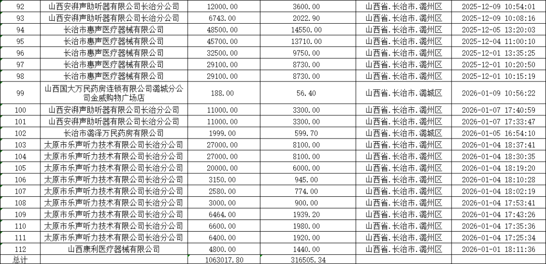 根据《山西省民政厅山西省发展和改革委员会山西省财政厅山西省商务厅关于印发<2025年山西省实施居家适老化改造产品消费补贴"晋孝焕新"行动方案>的通知》(晋民函〔2025〕68号)要求,经第三方机构初审、复审,市民政局核实,现将2025年“晋孝焕新”活动期间通过审核的订单补贴资金明细进行公示。补贴资金涉及销售主体12家,订单112笔,共计316505.34元,拟通过中国工商银行股份有限公司长治延安中路支行进行拨付,具体信息详见附件。本次公示时间从2026年1月20日至2026年1月24日。公示期间,对公示内容如有异议,可通过电话或电子邮件形式向市民政局反映。反映情况时请提供联系方式和所反映具体事项的证明材料。