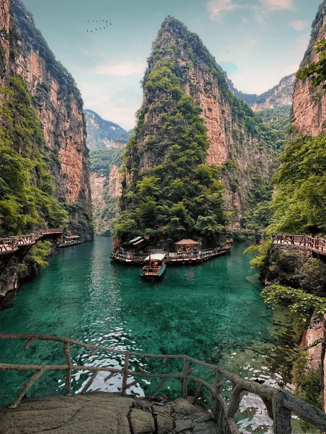 想看山,就奔壶关的太行山大峡谷。八泉峡水大,船行峡里,崖壁贴脸,风一吹,汗也下去一半。