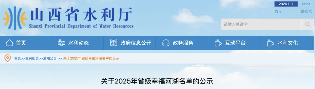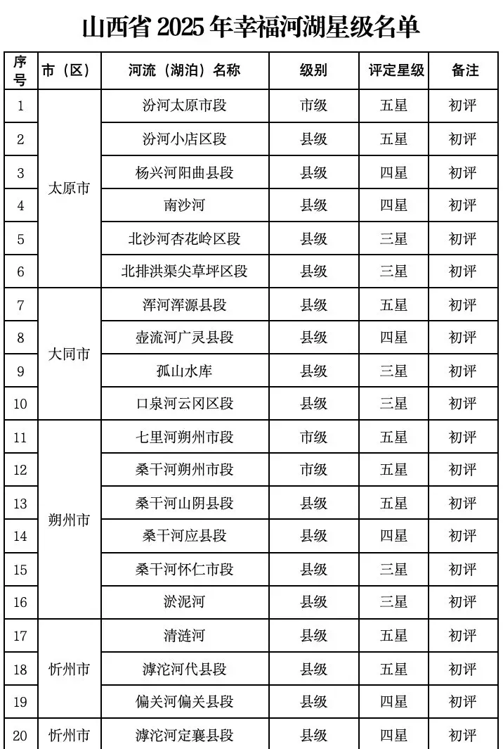 1月16日,山西省水利厅公示2025年省级幸福河湖名单,汾河太原市段等60条(段、个)河湖(库)被初评为2025年省级幸福河湖。