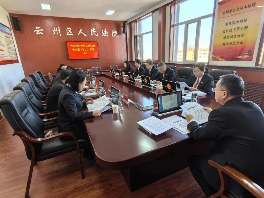 1月16日上午,大同市云州区人民法院召开理论中心组(扩大)2026年第一次学习会议。党组书记、院长孟守成主持会议,中层以上干部参会。