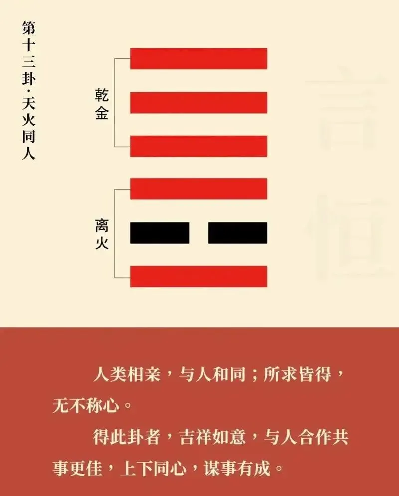 这种聚合,不是无原则的抱团,也不是泯灭个性的混同。它强调的是一种 “和而不同”的共同体:大家因共同的光明理想(天)而相聚,各自保有内在的热情与智慧(火),在共同的规则下,既相互温暖,又彼此照亮。