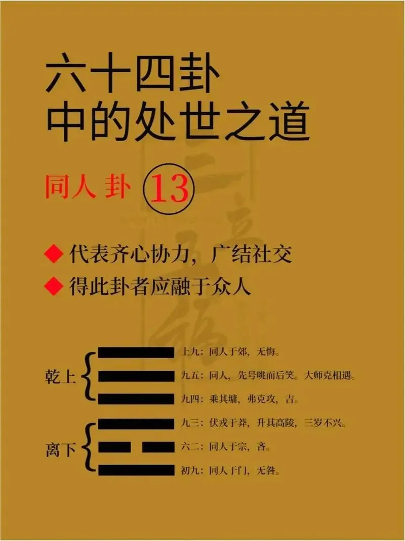 你是否曾在人群中感到孤独?在团队协作时,为意见不合而烦恼?我们渴望共鸣,又害怕失去自我;追求和谐,又困于分歧。这种现代人际关系的普遍困境,其实在古老的《周易》中,早已埋下了深刻的解答——关键就在“同人”这一卦。