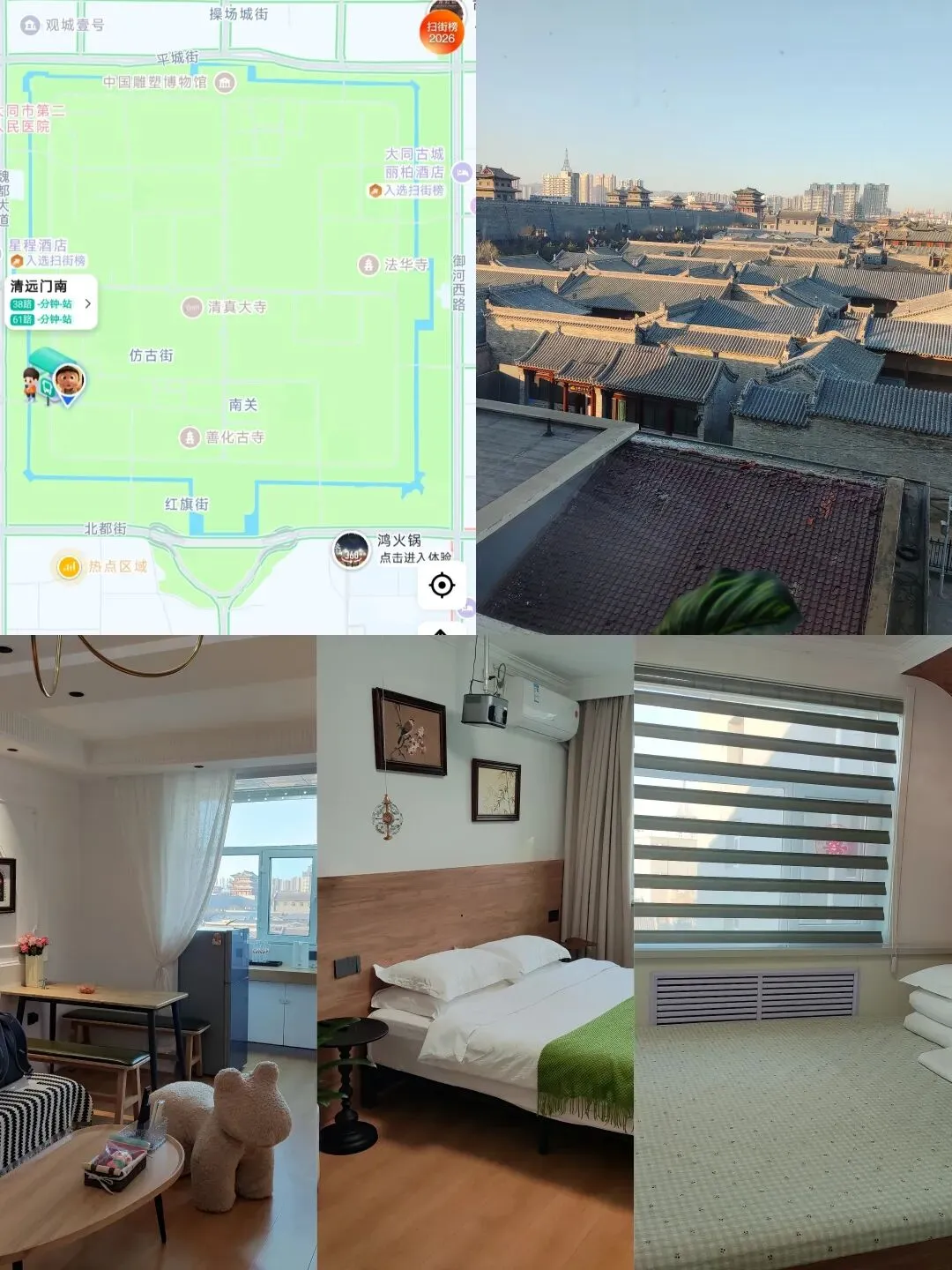为了方便游览和坐景区交通车,我们选择住在古城里。离华严寺不远,步行5分钟左右。现在的预定价格大约是暑假旺季的1/10。