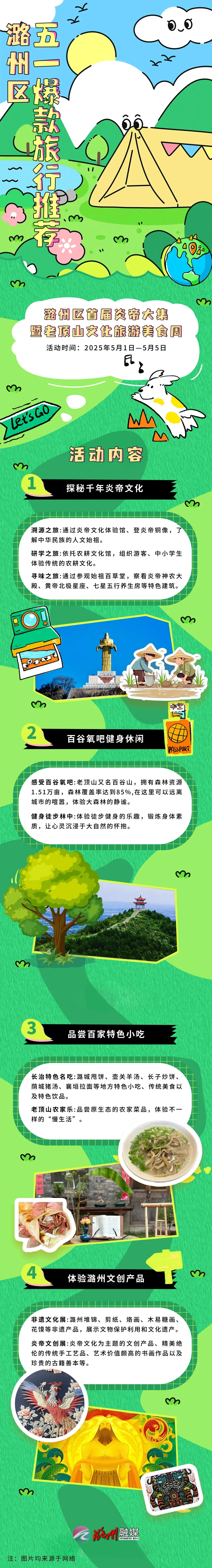 新增亮点:5月1日-5日举办首届炎帝大集暨文化旅游美食周,推出四大主题活动: