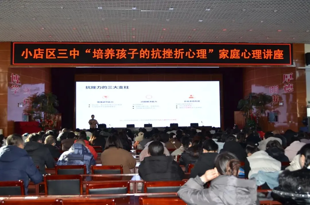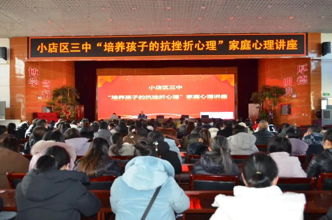 为加强家校共育,提高家长对孩子心理健康的重视程度,提升家长在培养孩子抗挫折能力方面的技巧和方法,太原市小店区第三中学校政教处于2026年1月20日下午2:40,在笃行楼五层报告厅成功举办了一场主题为“培养孩子的抗挫折心理”的家庭心理健康讲座。