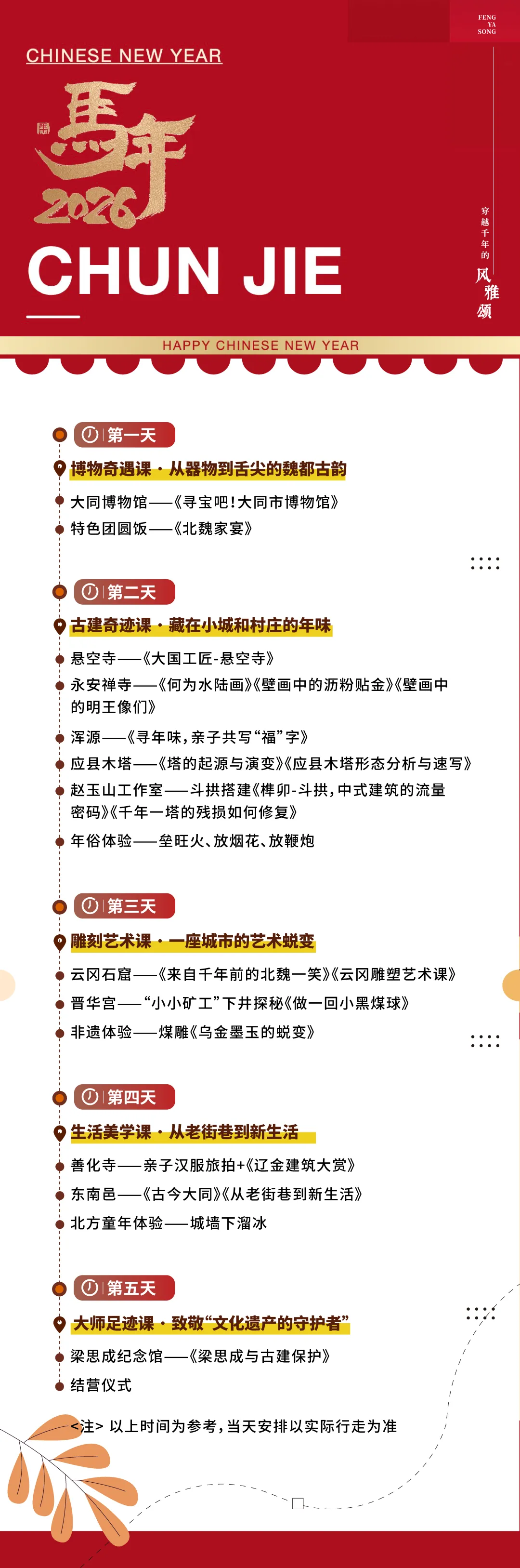 随后,我们将在浑源古城展开年味寻踪——观察老街巷里家家户户门上的春联,亲子共写“福”字,感受小城独有的春节氛围。