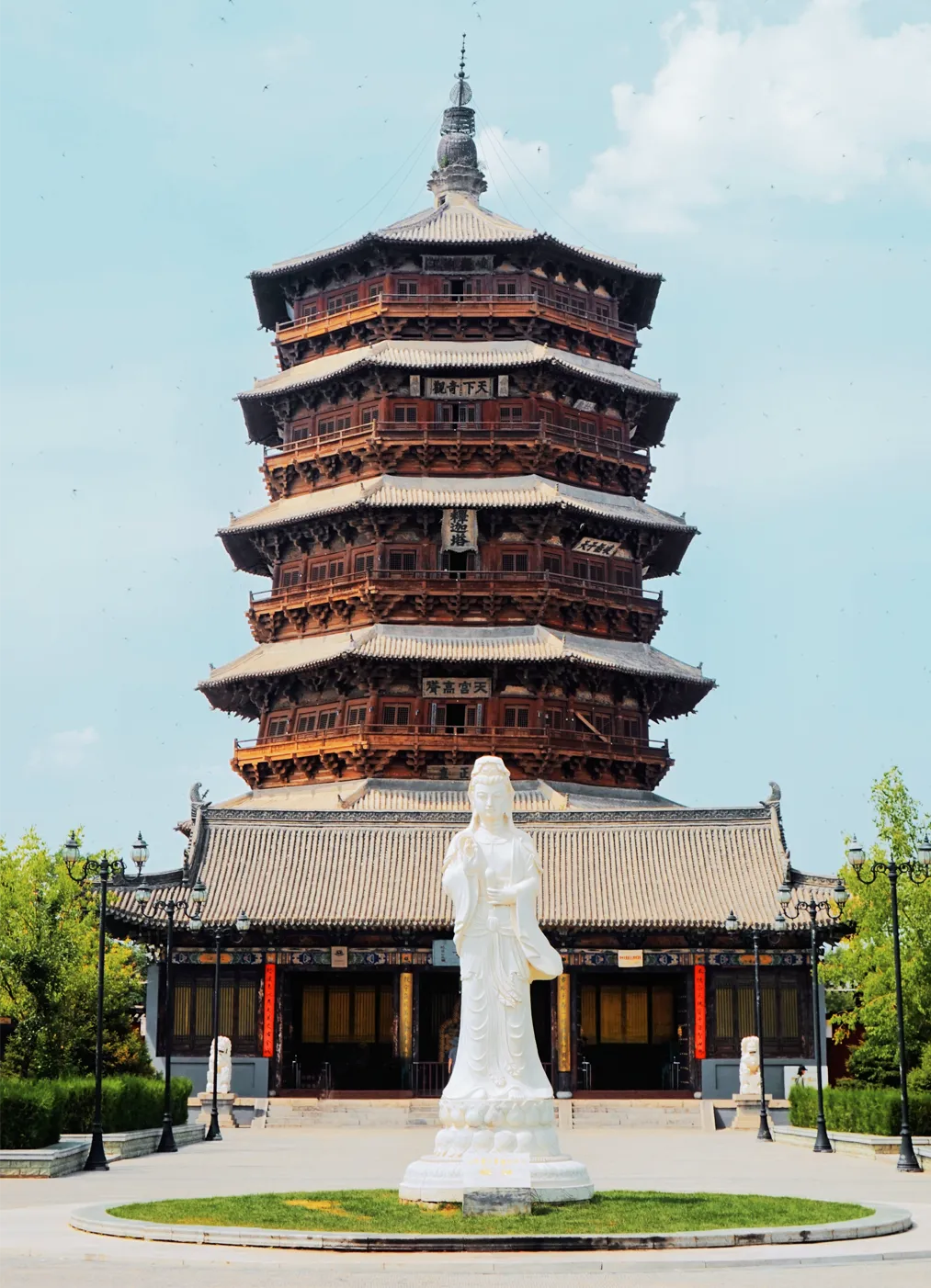 世界现存最高木构建筑(67.31米),世界三大奇塔之一,54种斗拱如百尺莲花,被誉为“中国斗拱博物馆”